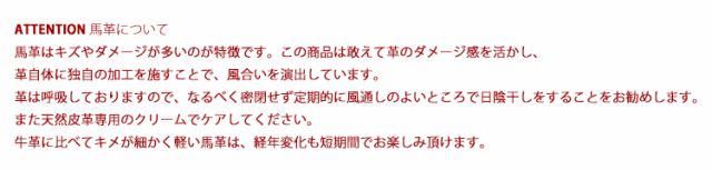 | 牛革に比べると独特の荒さがありますが、見た目からは想像できないなめらかな手触り感です。 そして牛革以上に経年変化による艶感と深みを楽しめます。 |