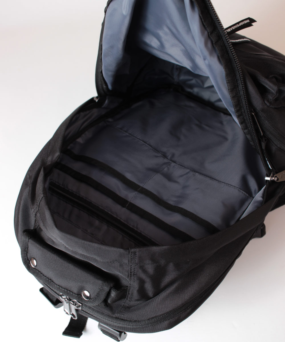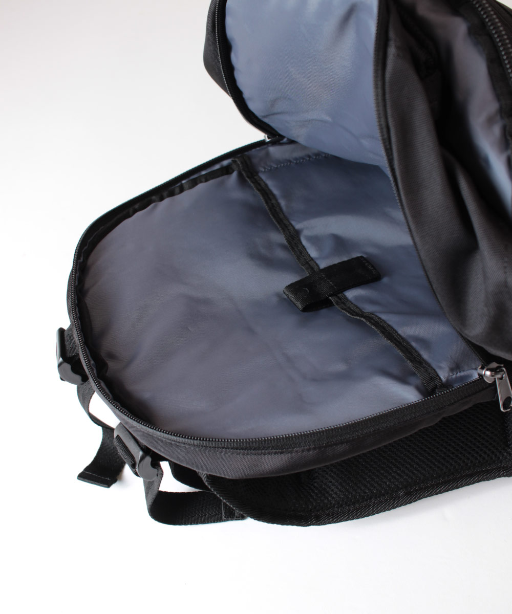 メインコンパートメントと、ラップトップ収納コンパートメントととがふたつに分けられた機能性の高いディテールがひとつのリュックで「融合」しています。
