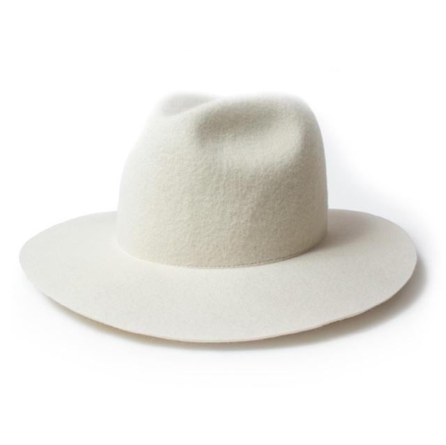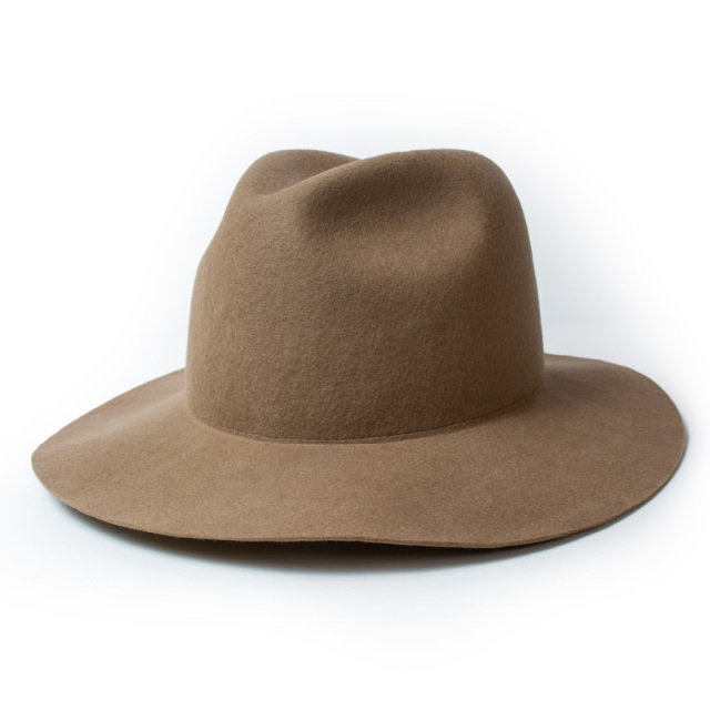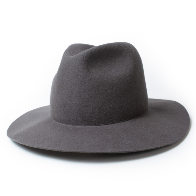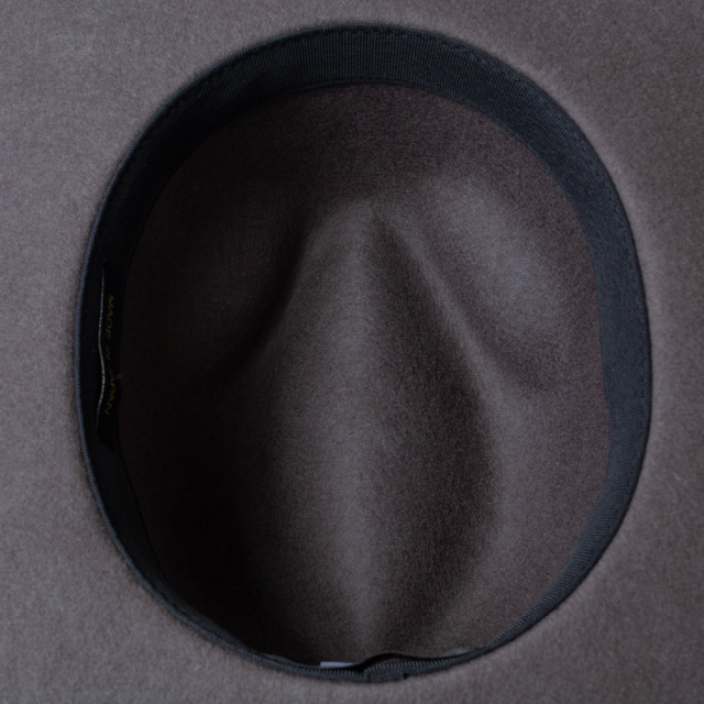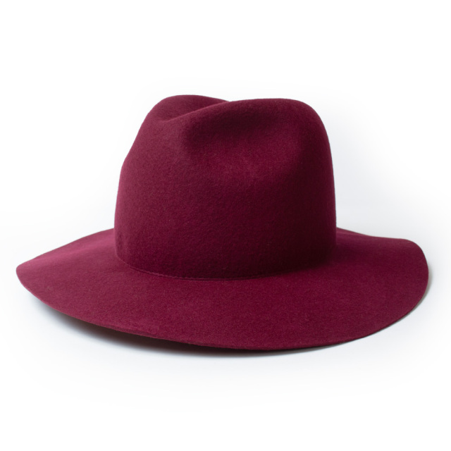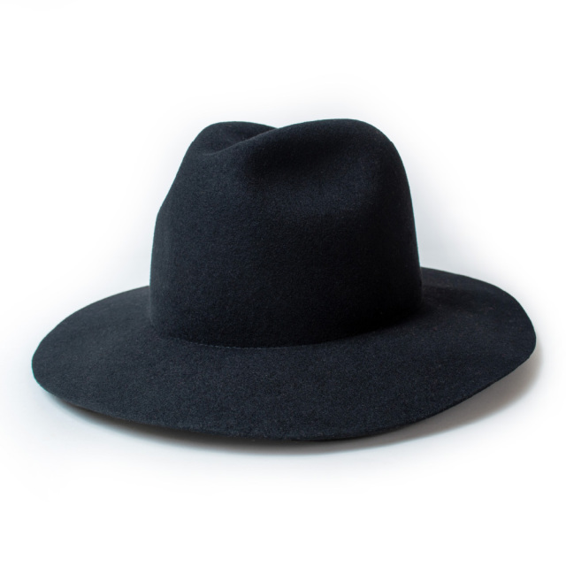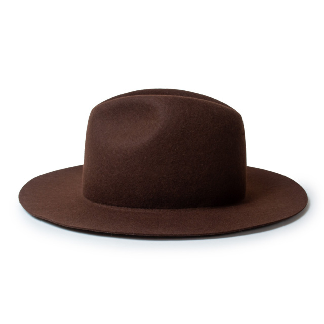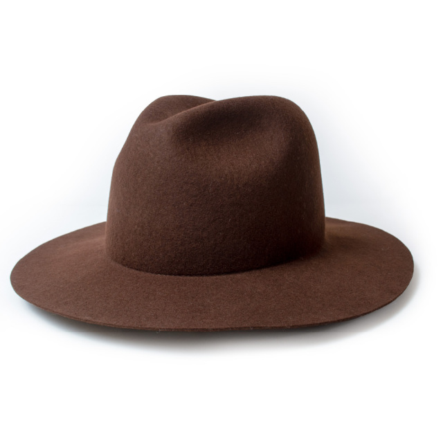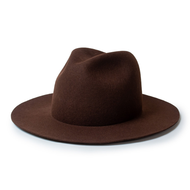 全て熟練の職人によるハンドメイドで仕上げた折りたたみ可能なクラッシャブルのツバ広フェルトハット。