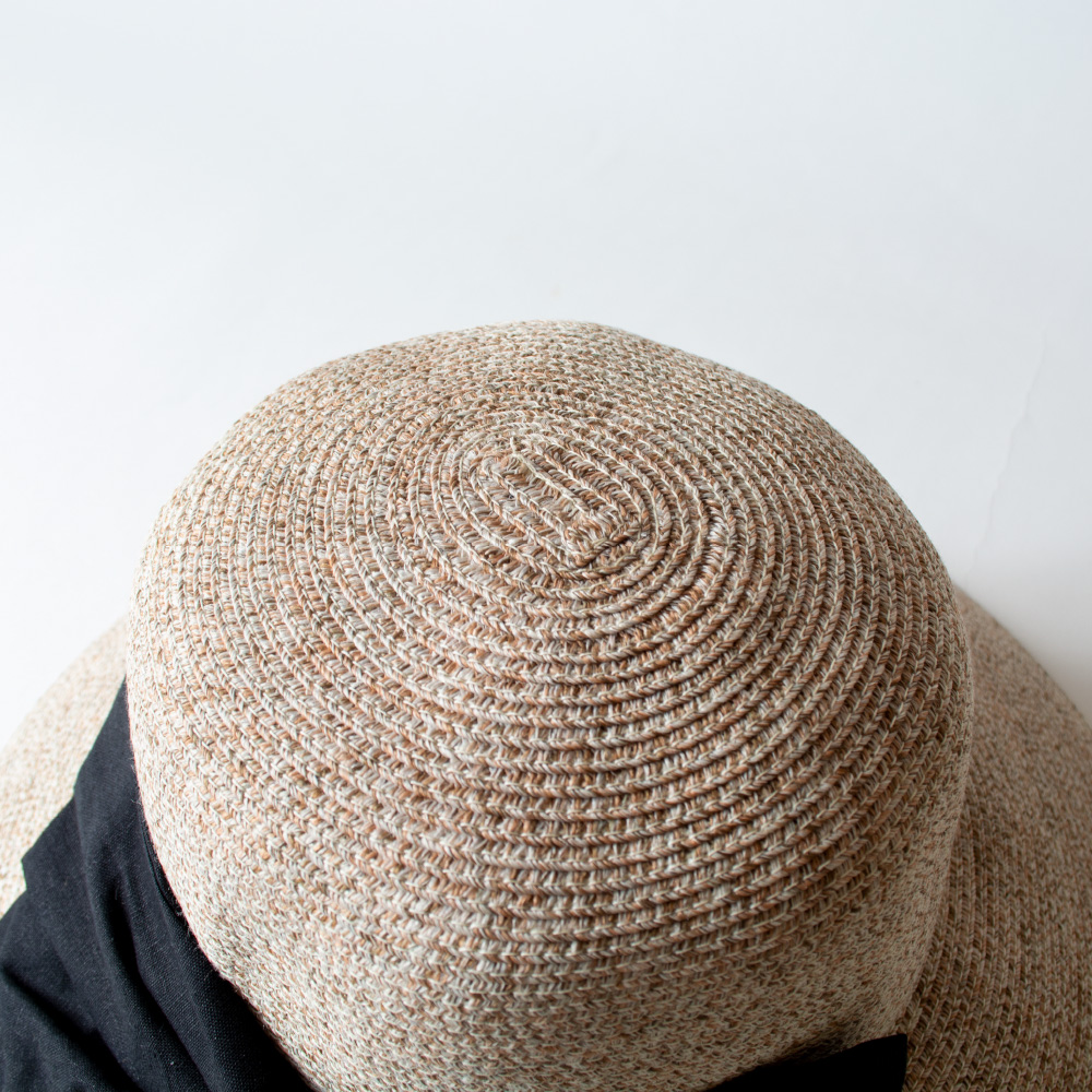 日差し、紫外線対策にUVプロテクションで活躍する、つば広で少し下がったキャペリンハット。
