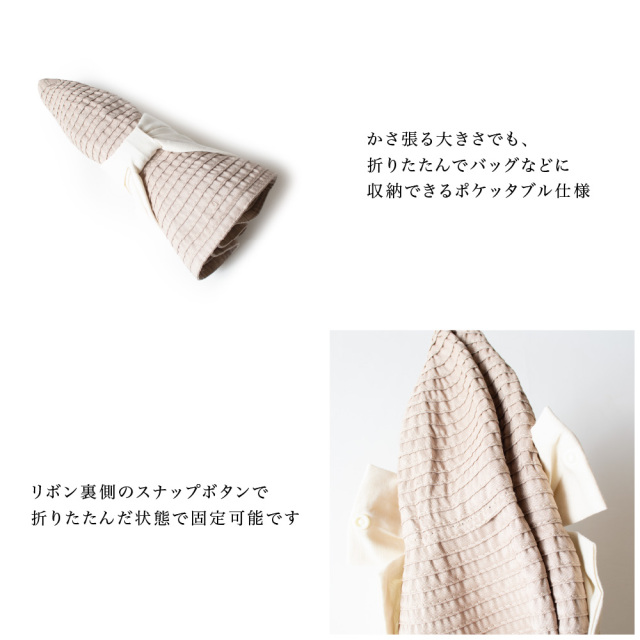 ・折りたたんで、リボンの裏側のスナップボタンで固定可能