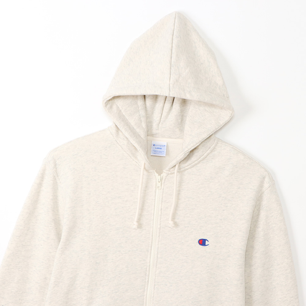 環境に配慮して生産されたサスティナブルなアメリカ綿「コットンUSA」に、同じく環境に配慮されたリサイクルポリエステルをブレンドした裏毛素材のジップフーデッドスウェットシャツです。