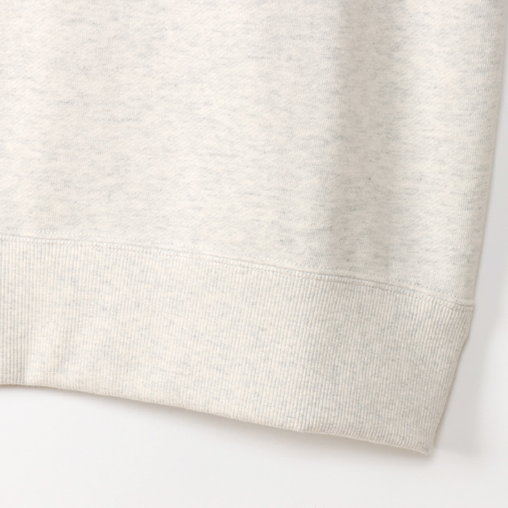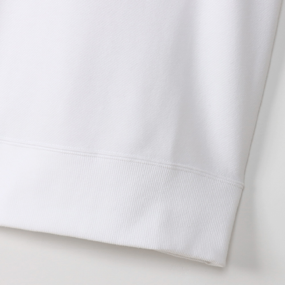 環境に配慮して生産されたサスティナブルなアメリカ綿「コットンUSA」に、同じく環境に配慮されたリサイクルポリエステルをブレンドした裏毛素材のショートスリーブクルーネックスウェットシャツです。