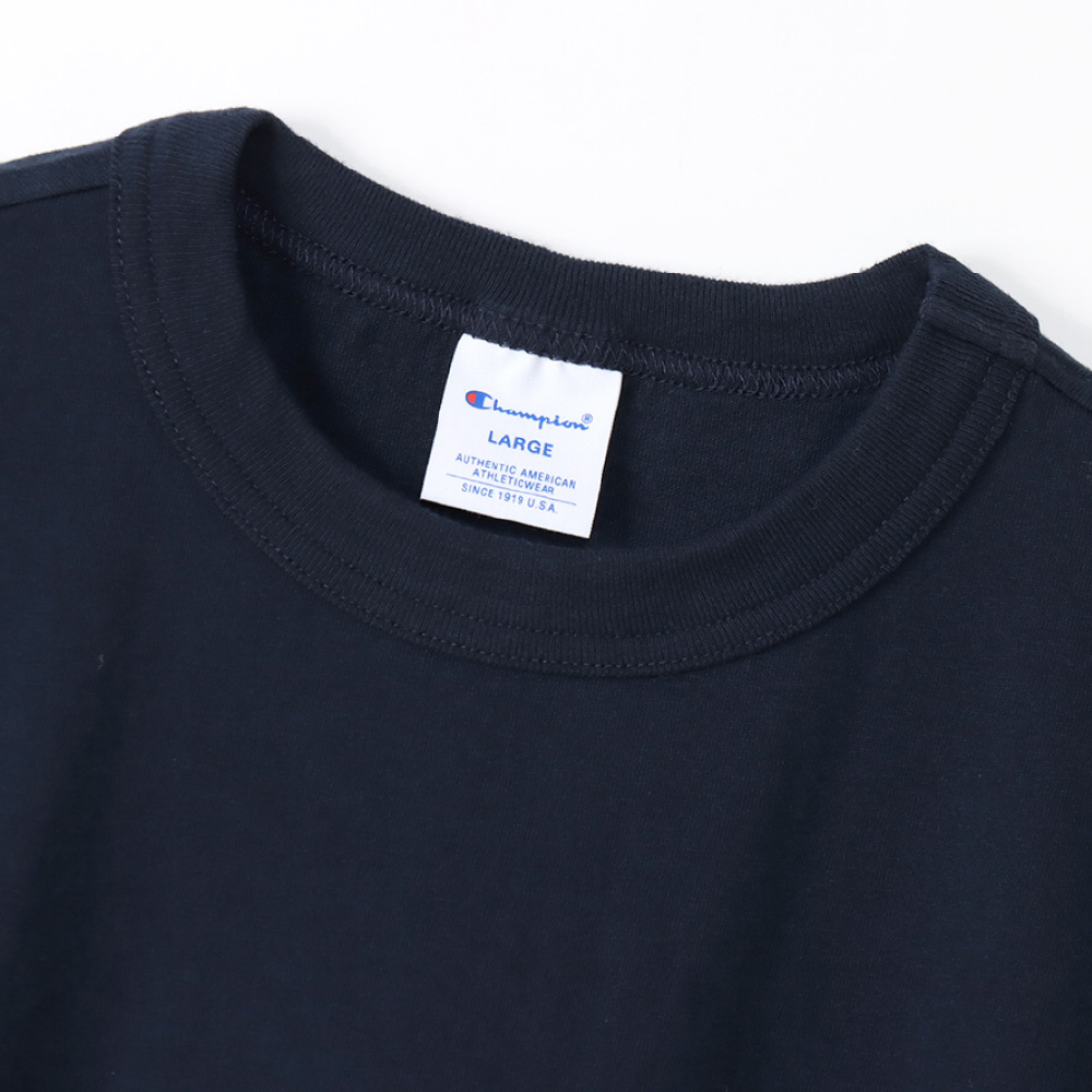 オーセンティックアメリカンアスレチックウェアのChampion(チャンピオン)らしいバインダーネック仕様もポイント。