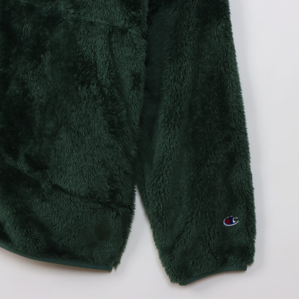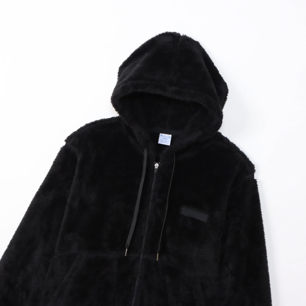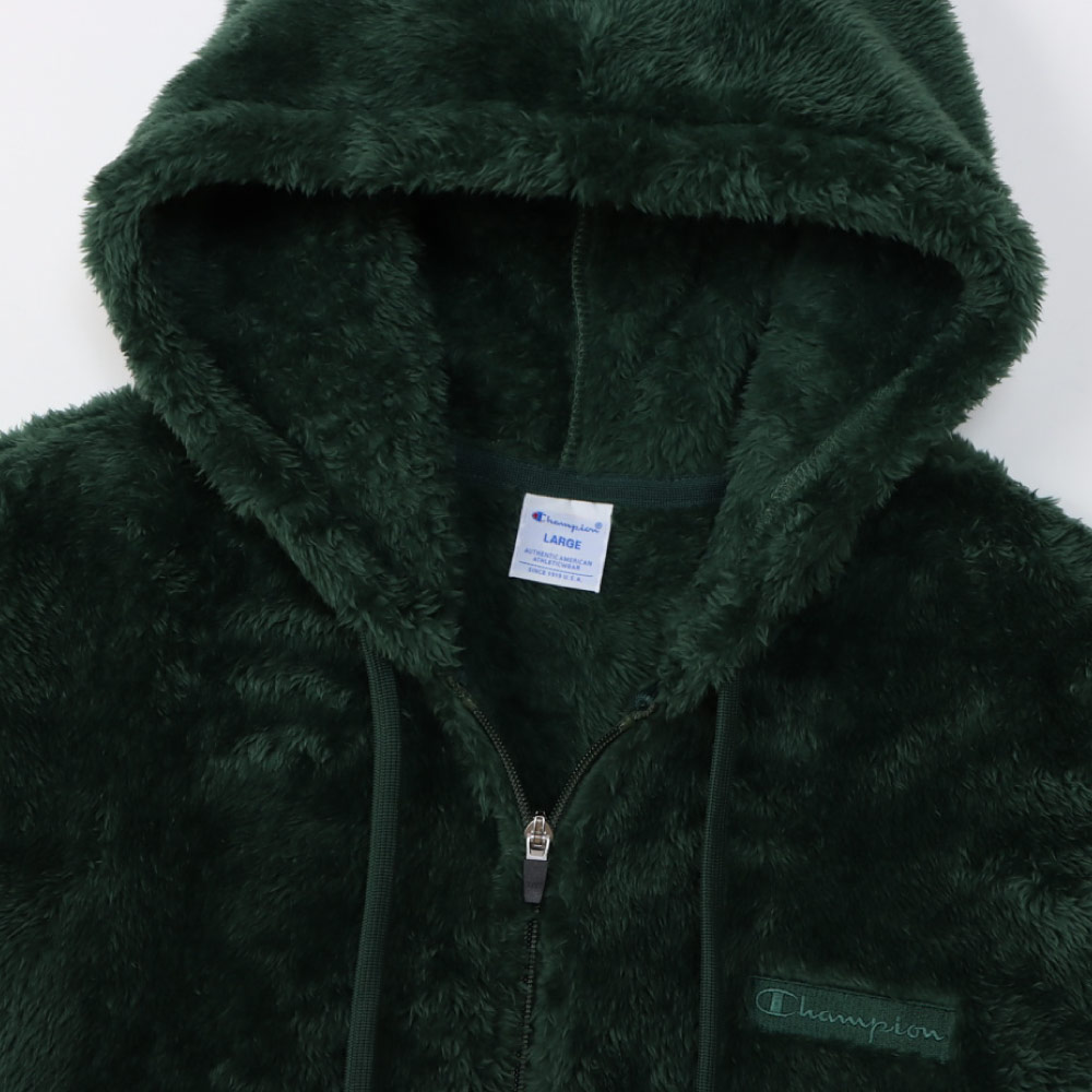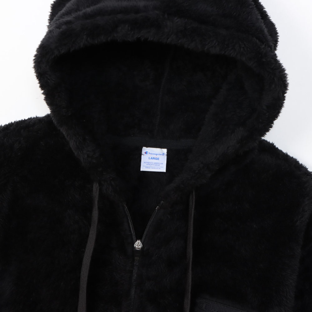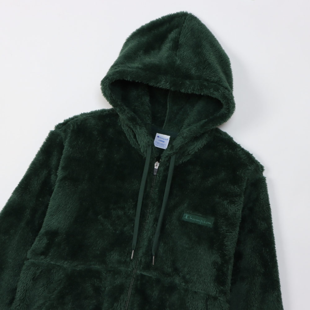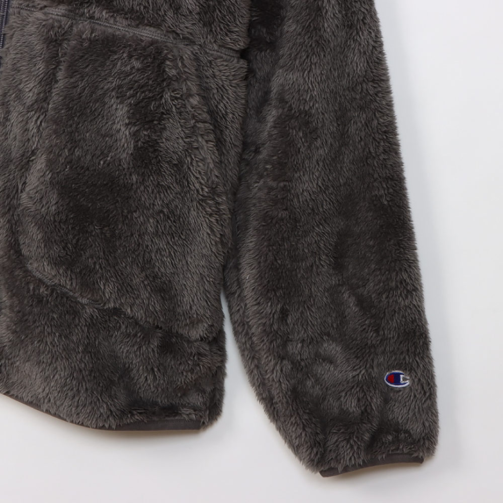 柔らかい肌触りでふわふわと毛足が長く、上品な光沢が魅力のシェルパフリース素材のジップフーデッドジャケットです。