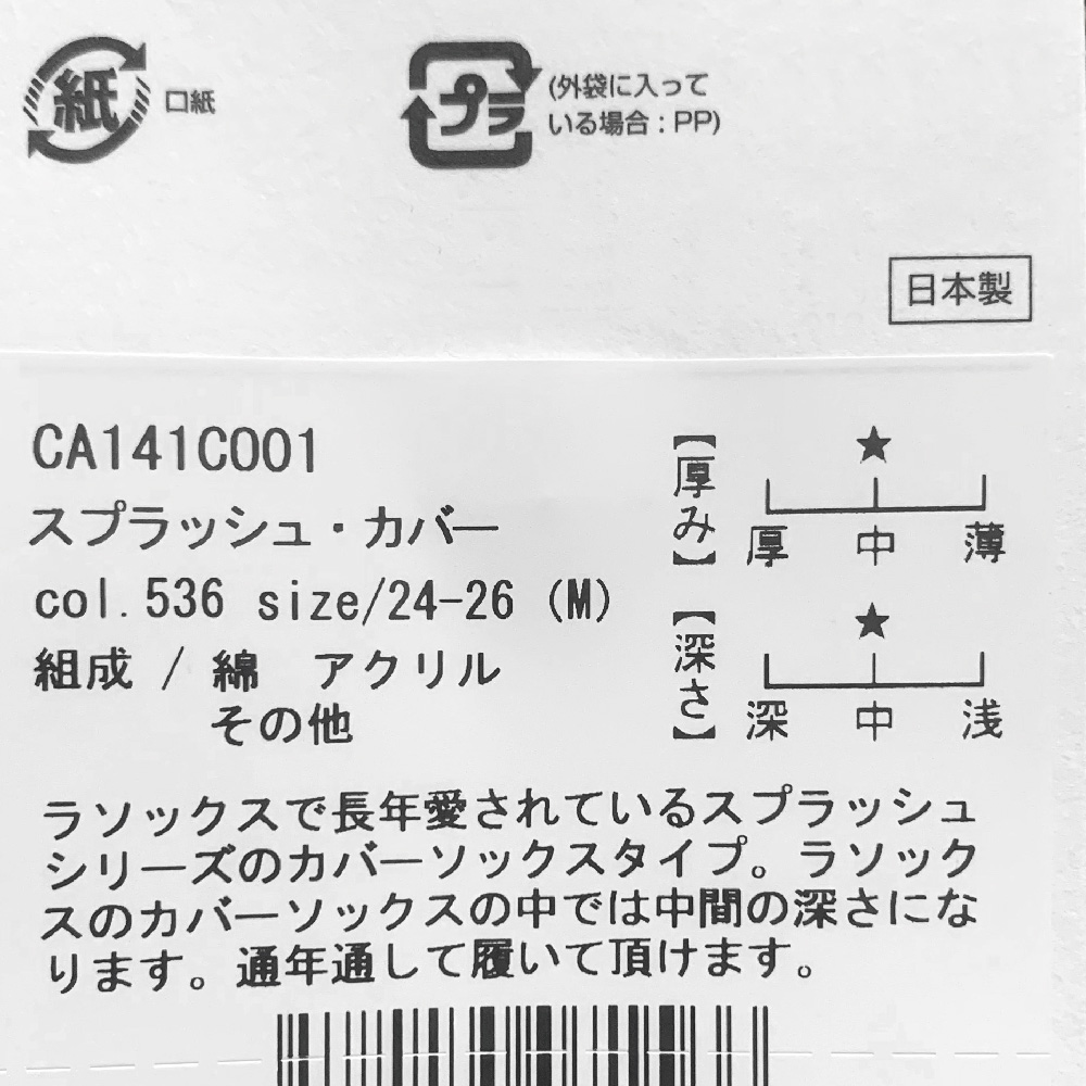 ラソックスで長年愛されているスプラッシュシリーズのカバーソックスタイプ。