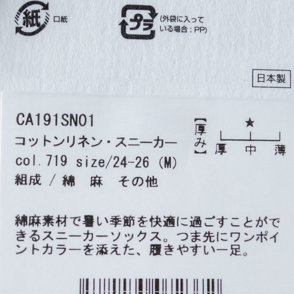 綿麻素材で暑い季節を快適に過ごすことができるカジュアル靴下です。