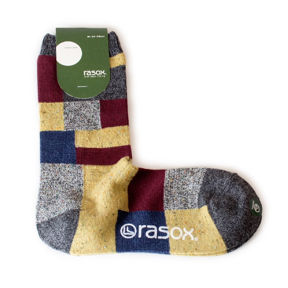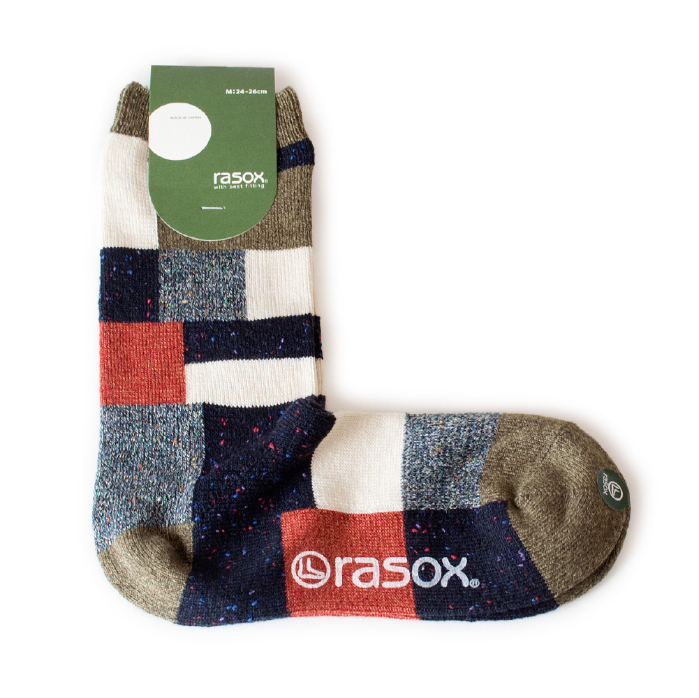 • ラソックス rasox 靴下 ソックス パッチワークコットン L字型 クルー丈 レディース メンズ ユニセックス 女性用 男性用 男女兼用 日本製 ラソックスジャパン CA202CR20 メール便対応 ギフトラッピング無料