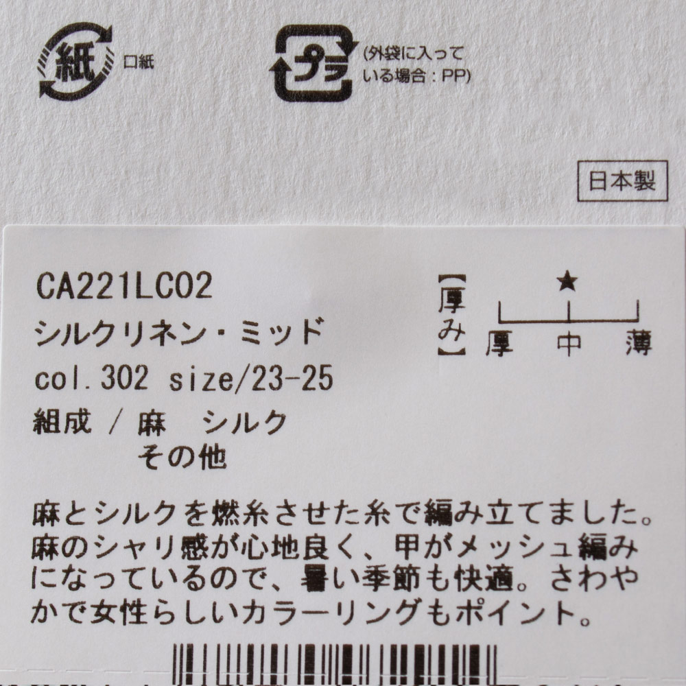 製品名: 靴下 ソックス シルクリネン・ミッド L字型 レディース ウイメンズ 女性用 日本製 CA221LC02