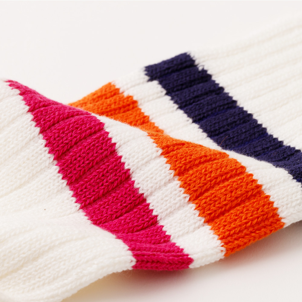 ヴィヴィットなカラーが目を引く3ラインのクルーソックス。