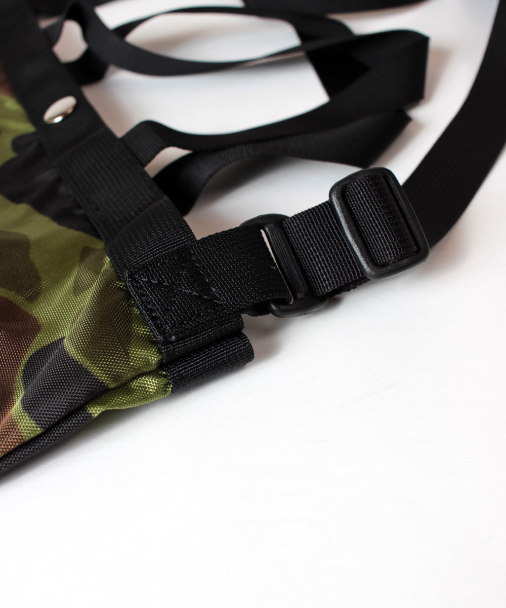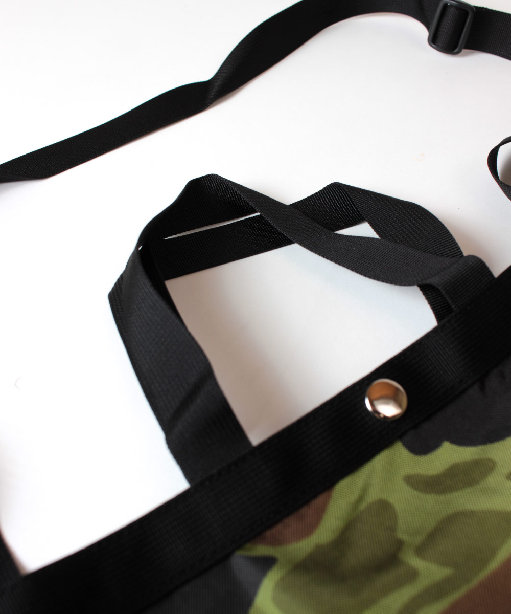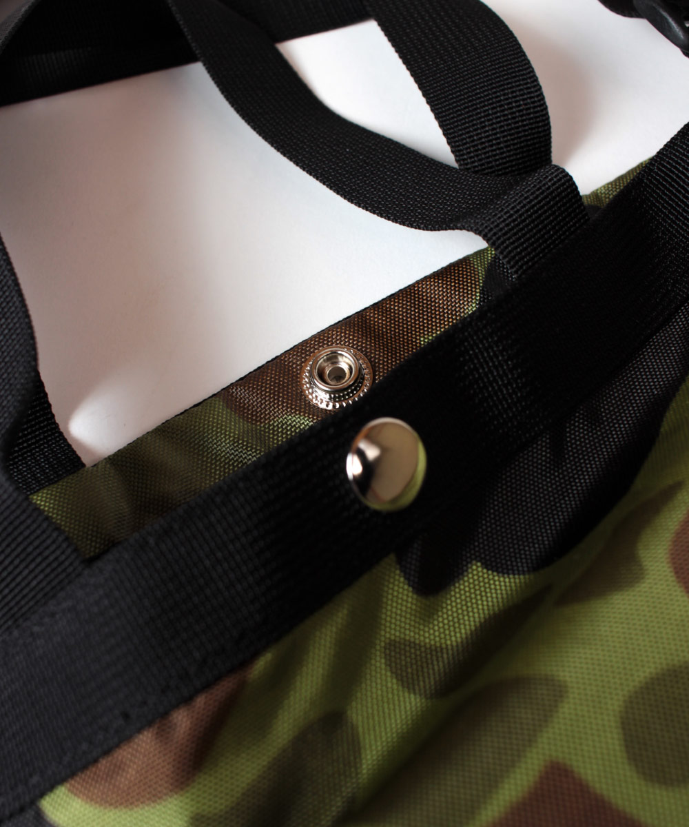 ナイロン素材のメッシュ生地はコーティングが施してある為、見た目以上に丈夫で荷物による型崩れの心配はありません。