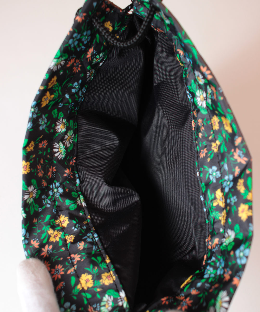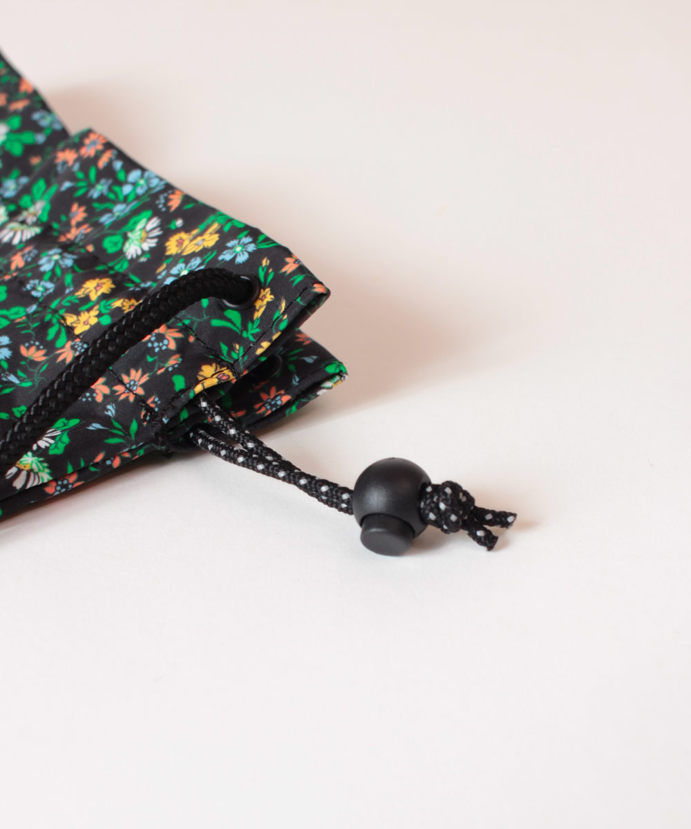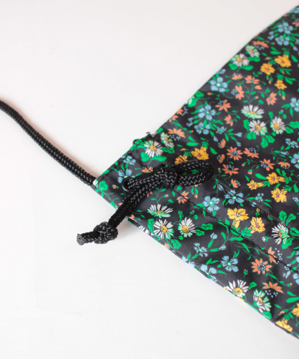 シンプルな構造で、ドローストリング型の開閉がデザイン上のアクセントとなっています。