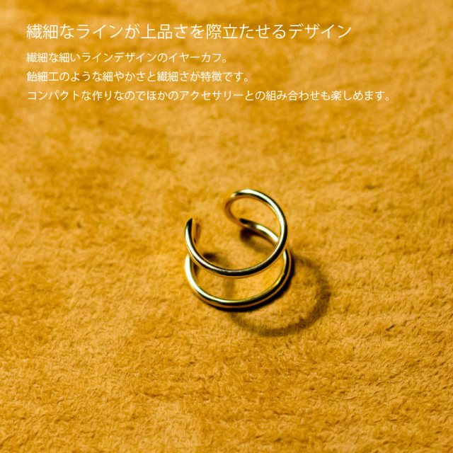 繊細なラインが上品さを際立たせるデザイン繊細な細いラインデザインのイヤーカフ。