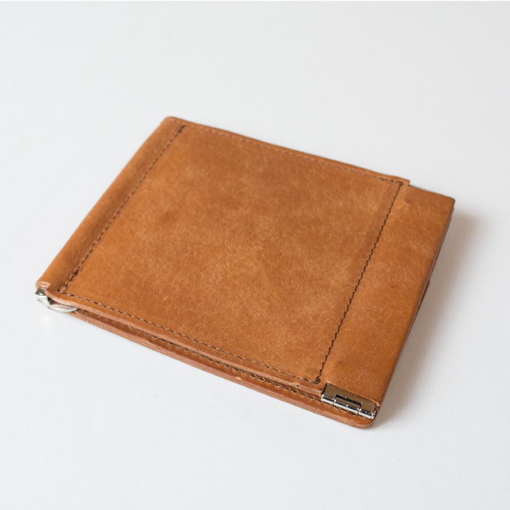 本革イタリアレザーのコインケース付きマネークリップ
