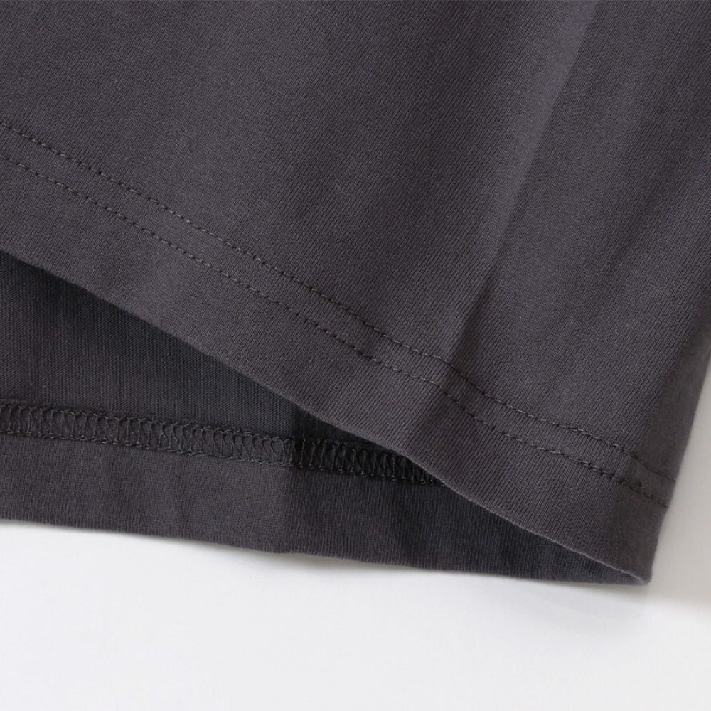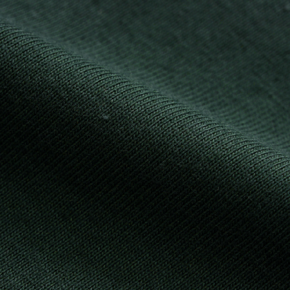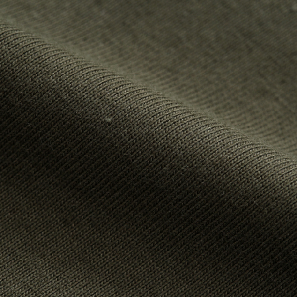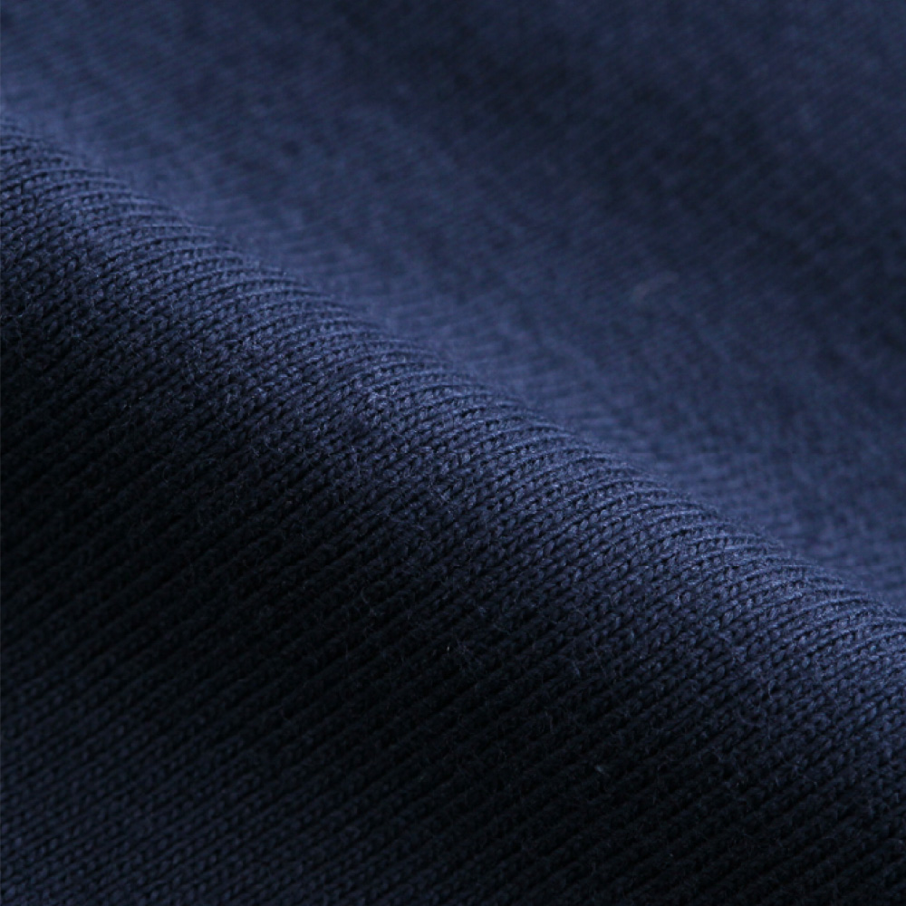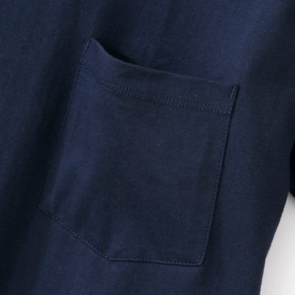 ヘビーウェイト(肉厚)のコットン100%生地を使用し、洗えば洗うほど肌に馴染み、洗いこんでも首周りが伸びにくく型くずれしにくい強さと耐久性が特長です。