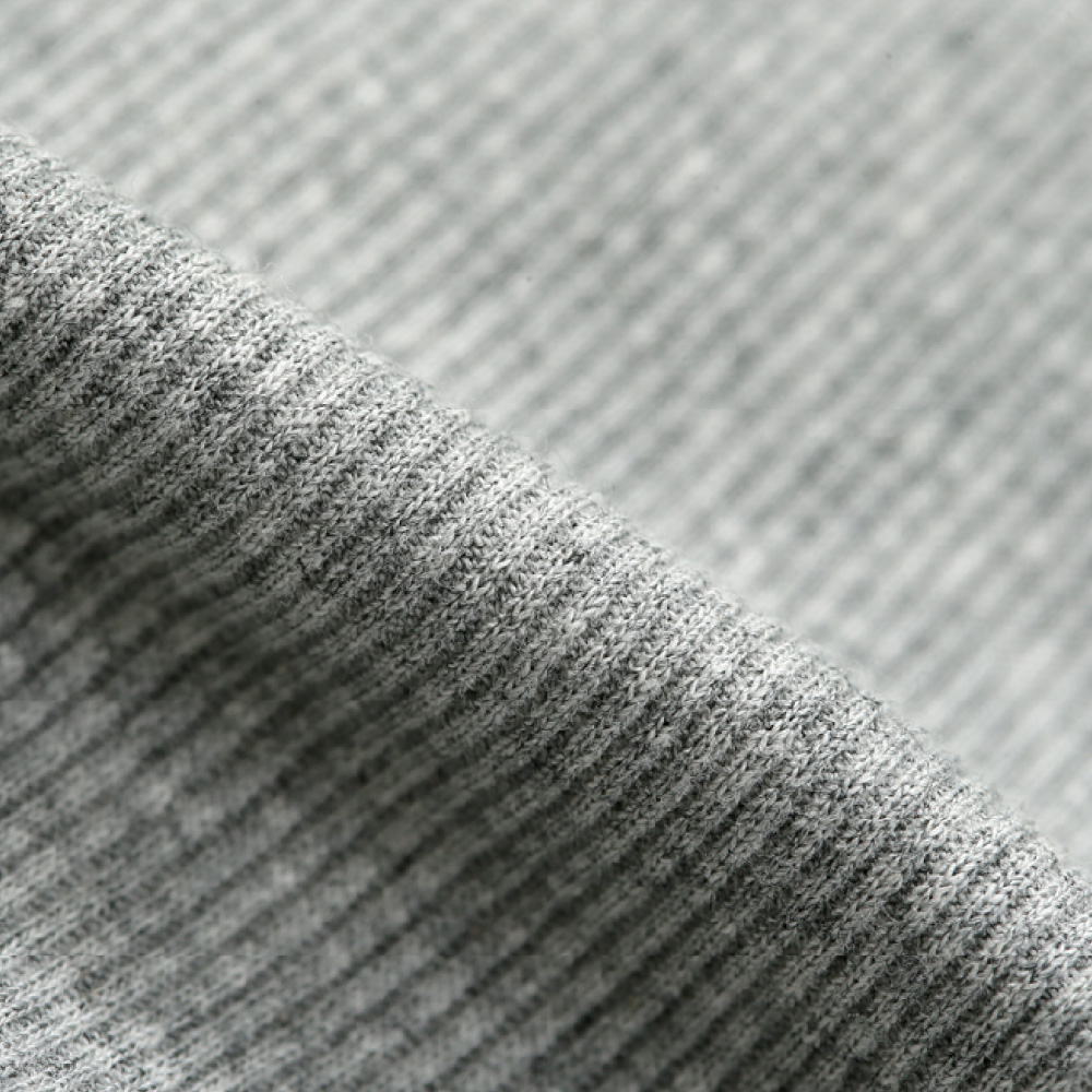 リブ編みの一種で凹凸感のあるテレコ素材を使用し、優れた伸縮性による心地良いフィット感が魅力。