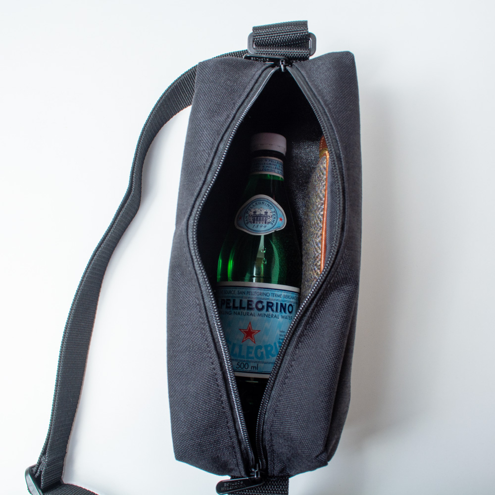 500mlペットボトルも、長財布もすっぽり収まる余裕のサイジング。